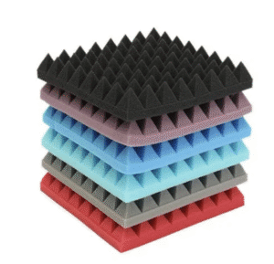 - The design of PU foam is wedge-like, the material’s thickness ranges from 4-12-25-50 mm and PU foam panels have standard dimensions of 1 foot versus 1 foot.