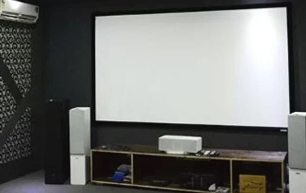 The home theater screen is designed with minute perforations to make way for sound while ensuring near-perfect light reflection from the Wolf Cinema True 4K Projector.